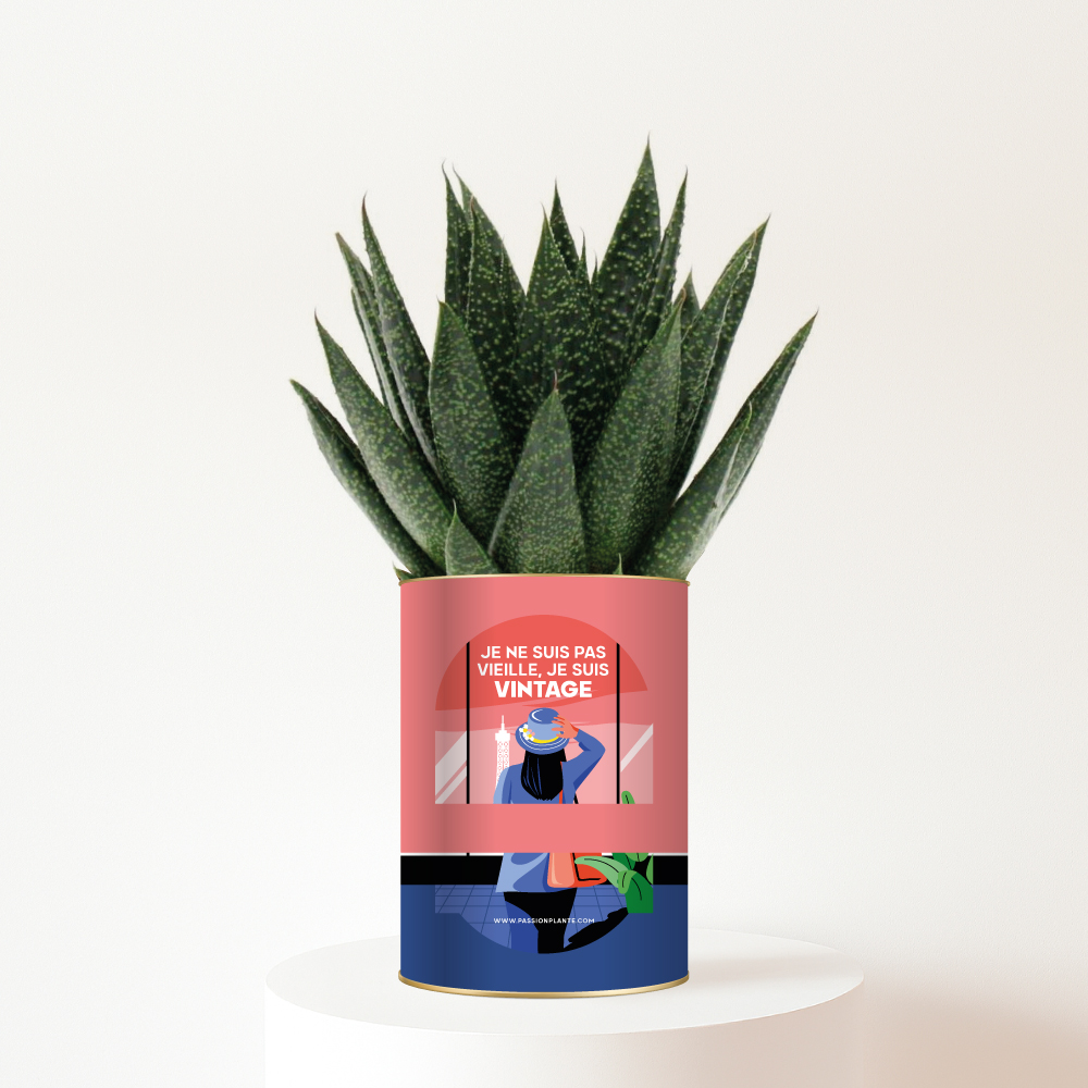 Offrir une plante personnalisée, c’est transmettre une émotion qui dure. Avec cette Gasteria élégante, vous lui glissez un clin d’œil complice, tendre et espiègle. Le message « Je ne suis pas vieille, je suis vintage » transforme le temps qui passe en véritable atout, une façon joyeuse de rappeler que chaque année ajoute du charme… et un peu plus de caractère.