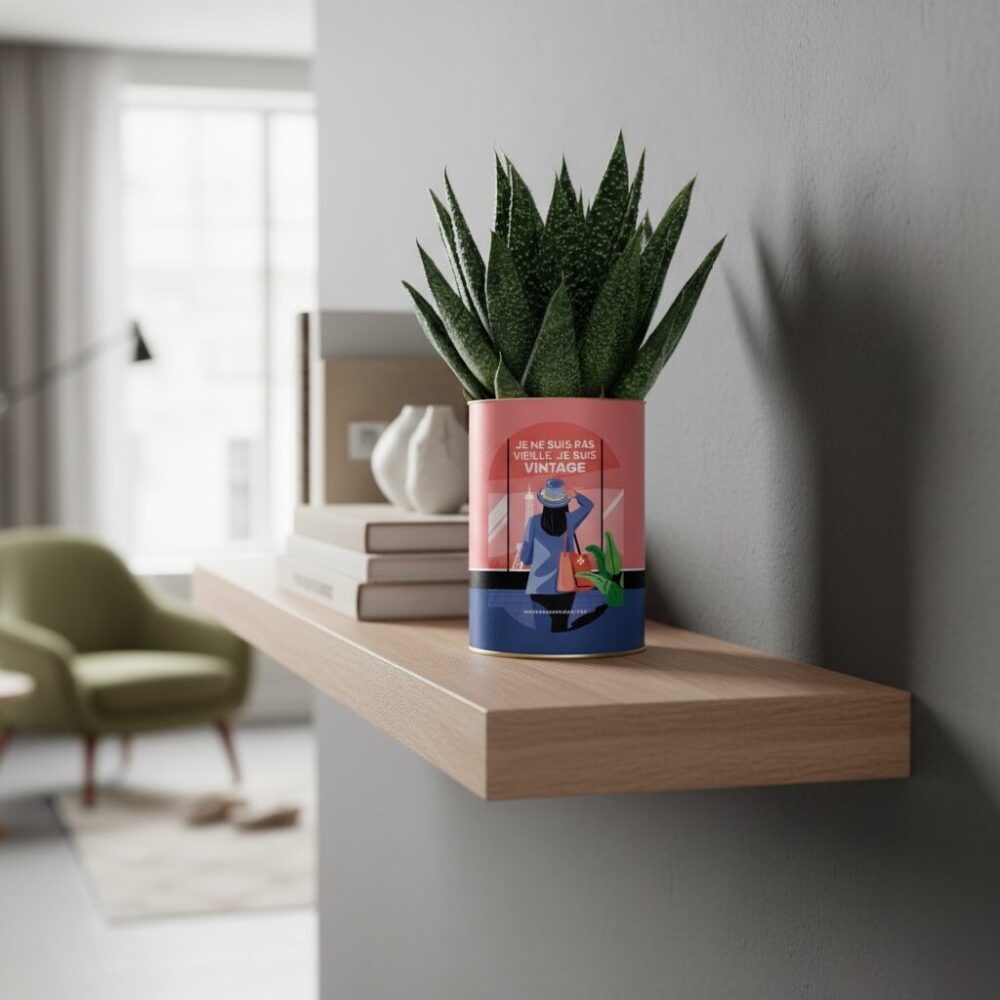Le message « Je ne suis pas vieille, je suis vintage » apporte une touche espiègle et irrésistible. Un cadeau nature qui fait sourire et qui dure.