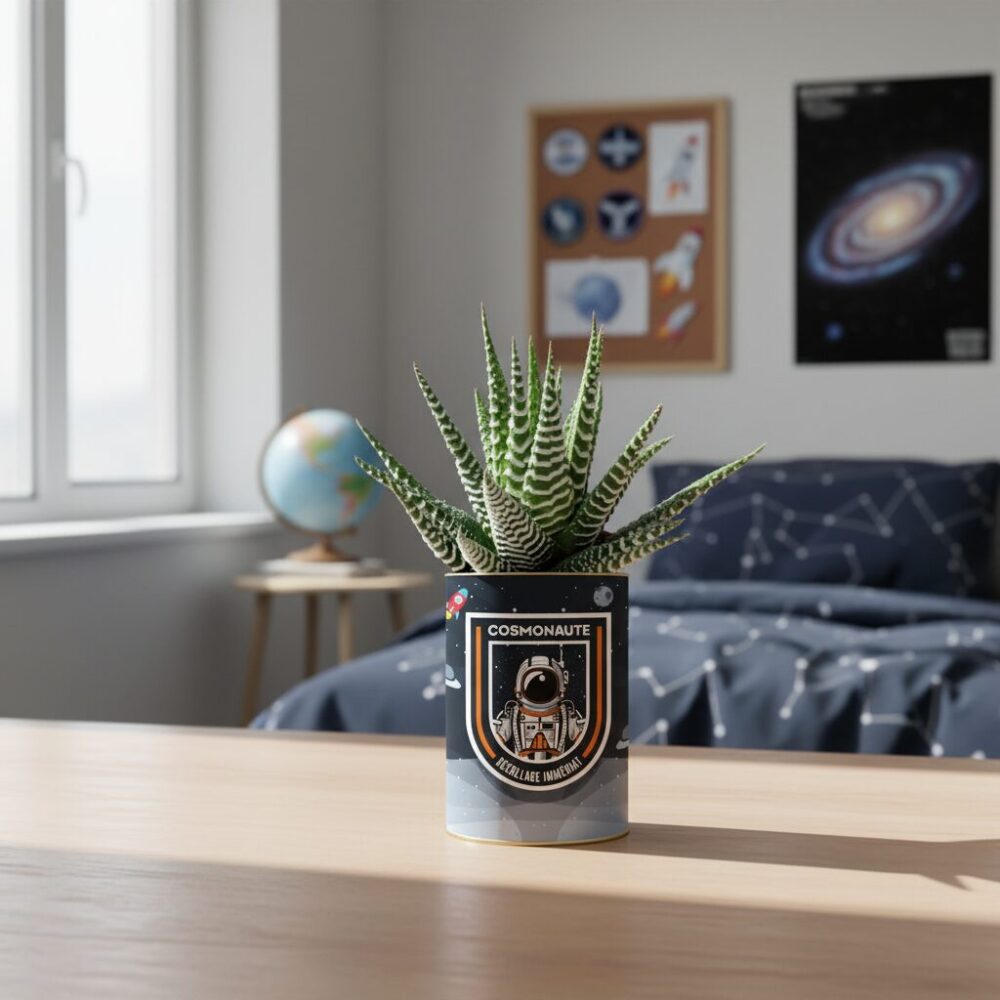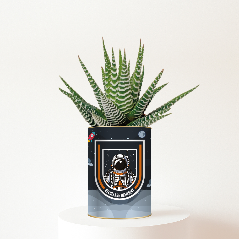 La Gasteria « Cosmonaute » est une plante personnalisée parfaite pour les petits rêveurs. Son design spatial et ses feuilles zébrées rappellent l’univers et la découverte.