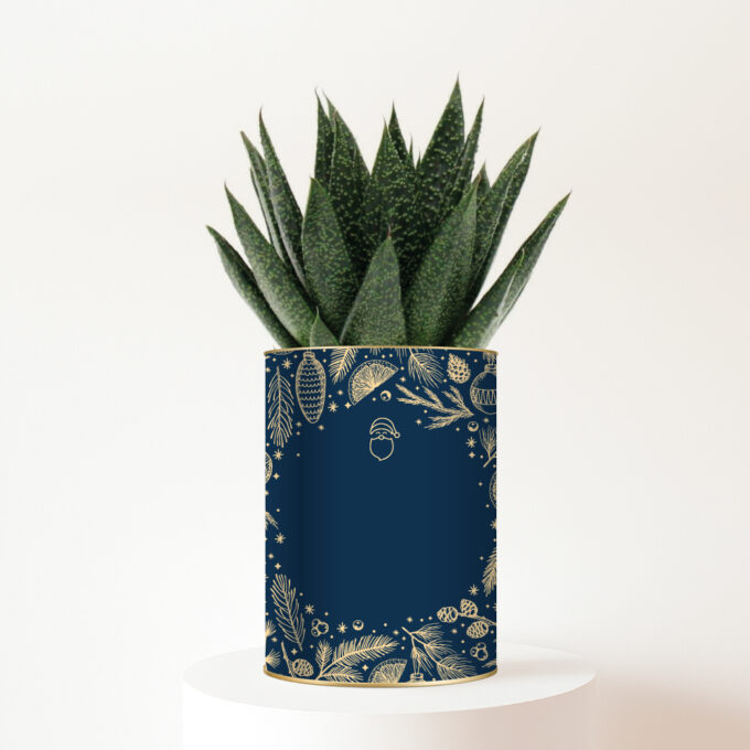 Faites briller les yeux de votre mamie avec cette plante personnalisée de Noël au message tendre et festif : « Joyeux Noël Mamie ». Présentée dans un pot bleu nuit orné de délicates illustrations dorées, cette création végétale réchauffe le cœur et l’atmosphère des fêtes.