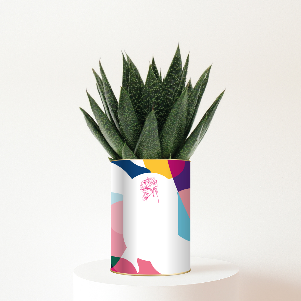 Une plante personnalisée pleine d’humour pour célébrer une amie unique. L’Haworthia Gasteria apporte sa touche de verdure apaisante, tandis que le design coloré du pot révèle toute sa personnalité.