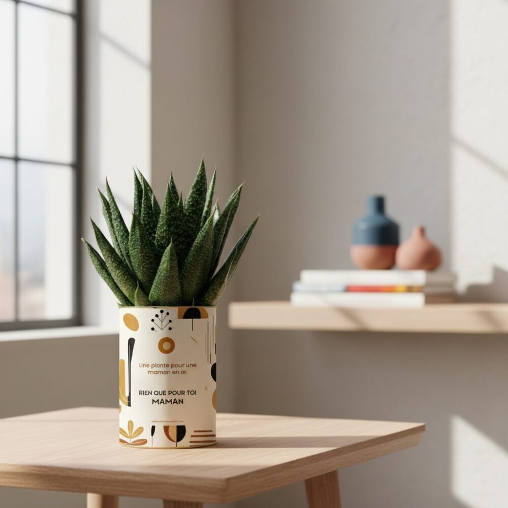 Offrir une plante personnalisée, c’est choisir un présent vivant, durable et chargé d’émotion. Cette succulente, à la fois élégante et facile à entretenir, devient ici un véritable message d’amour grâce à son étiquette délicatement illustrée. Pensée pour la fête des mères, un anniversaire ou simplement pour dire “je t’aime”, elle incarne l’attention sincère et le lien unique qui unit une maman à son enfant.