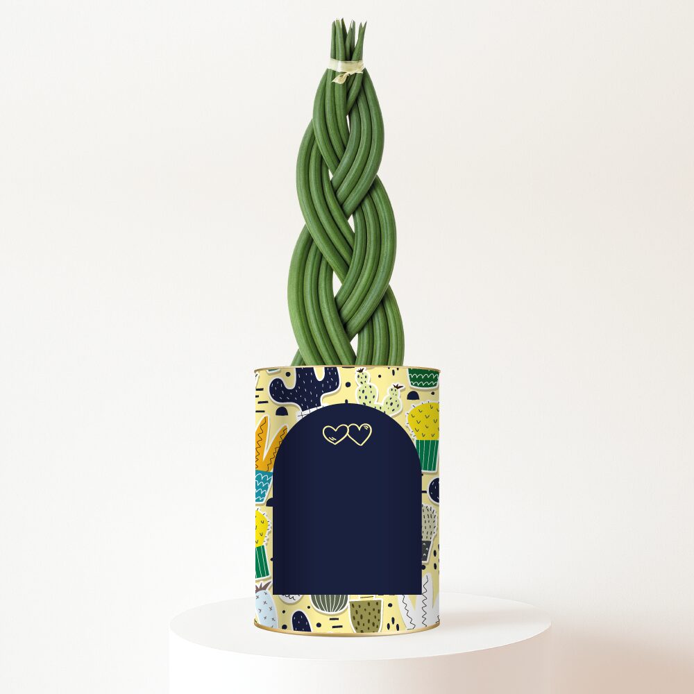 Un cœur, deux âmes célèbre la beauté du lien entre sœurs à travers une Sansevieria tressée pleine d’harmonie. Ses tiges entrelacées symbolisent l’union et la complicité.